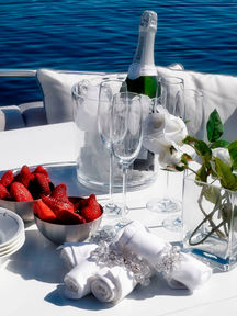 Stepping aboard the generous aft deck you will make your way through to the main saloon which includes dining and lounge spaces. The large shape galley, with ovens, four-burner hob, comprehensive refrigeration and storage capabilities, has been positioned as the heart of the entertaining spaces.